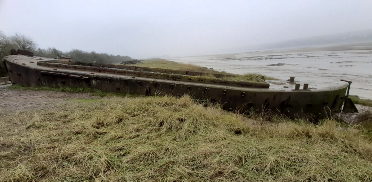 More boats have been added, including the schooner Katherine Ellen which was impounded in 1921 for running guns to the Irish republican army, the Kennet Canal barge Harriett, and barges built during the second world war The last boat was beached in 1965. The ground level has built up over the years and some of the more recent additions are lying on top of those which had been beached earlier.