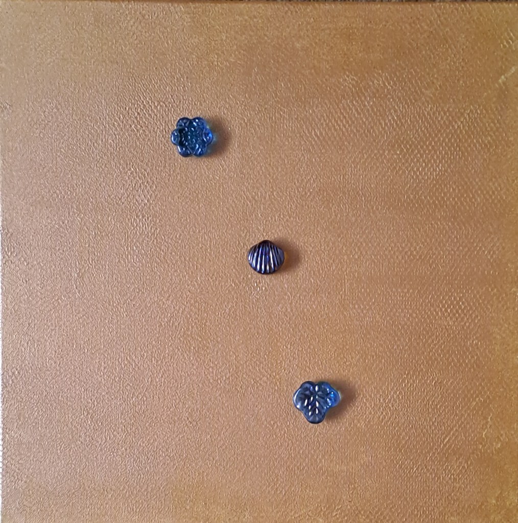 The piece features three small glass elements—each a symbolic representation of one of nature’s gifts: a leaf, a shell, and a flower. These delicate fragments evoke the harmony of the natural world, grounded yet transcendent, speaking to the interconnectedness of life on Earth.
