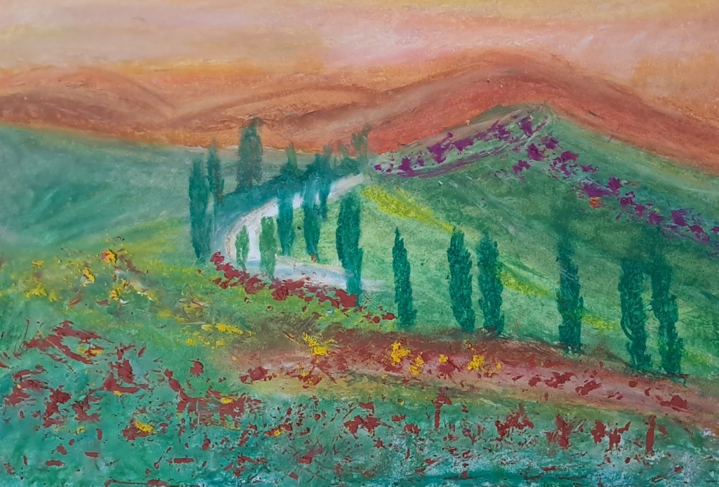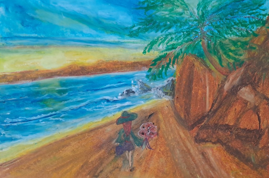 “There’s something elemental about it,” she explains. “With oil pastels, there’s no brush, no tool separating me from the colour. It’s just my hand, the pigment, and the paper. That physical connection is calming. It’s like I can feel the earth again.”
