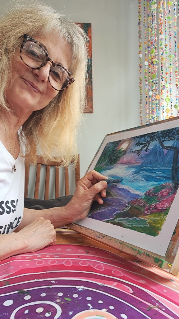 Through gentle strokes and quiet landscapes, she’s not escaping the world but learning how to stay in it differently.
