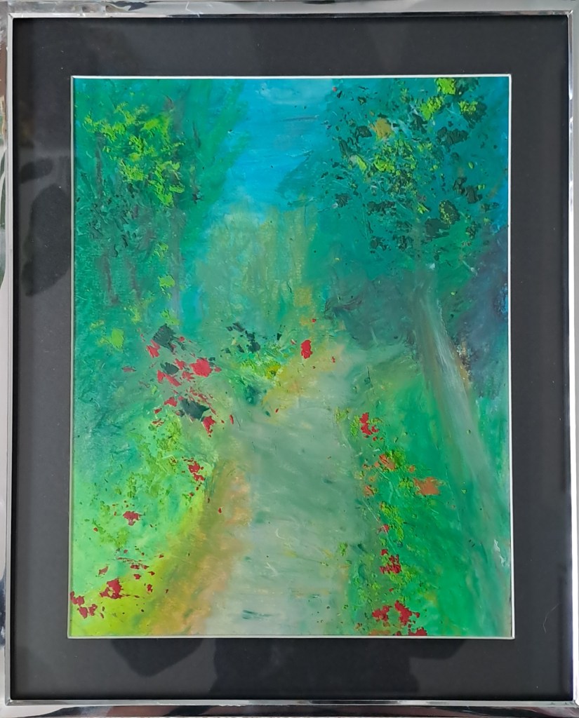 Whispers of the Wild Path is my way of honouring those moments when the world falls away and only the hush of the forest remains. The winding path, softened by moss and memory, is a place I often return to in my mind—a space of stillness, where light sifts through leaves and wildflowers speak in sudden bursts of colour.