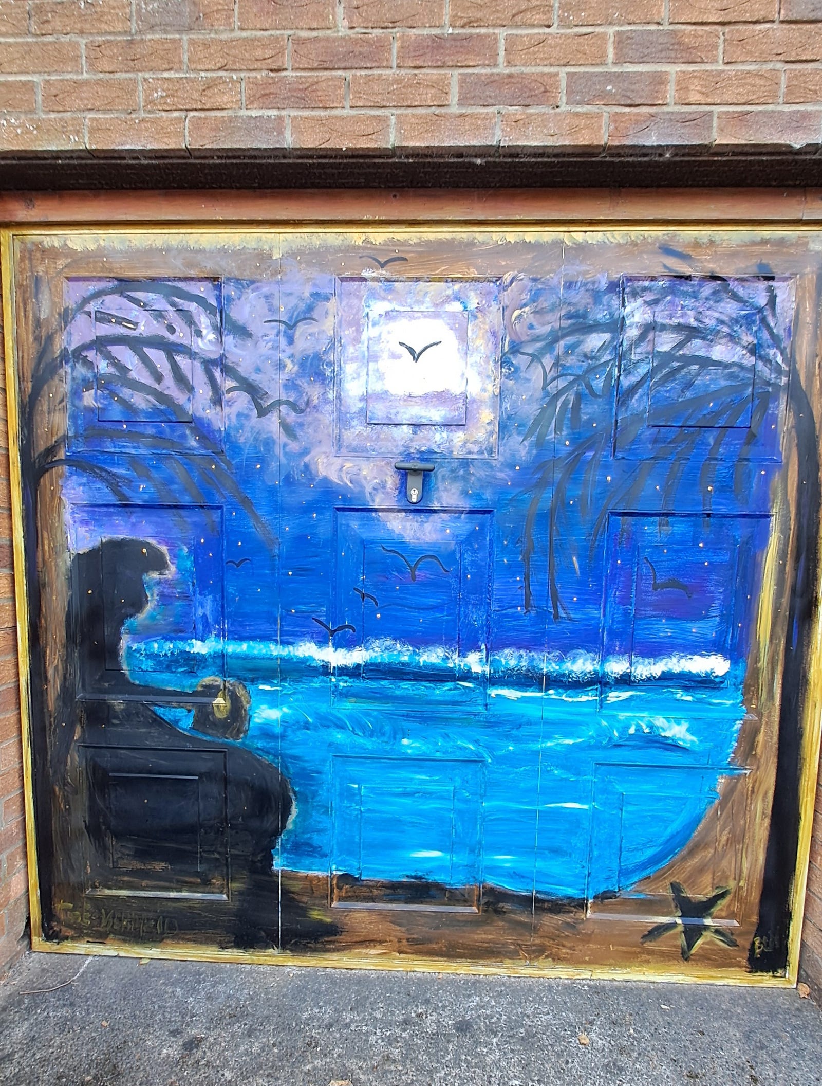 Now living in North Gosforth, Newcastle upon Tyne, Laura continues to create against the grain, transforming ordinary surfaces — from garden walls to garage doors — into portals of imagination and quiet rebellion.