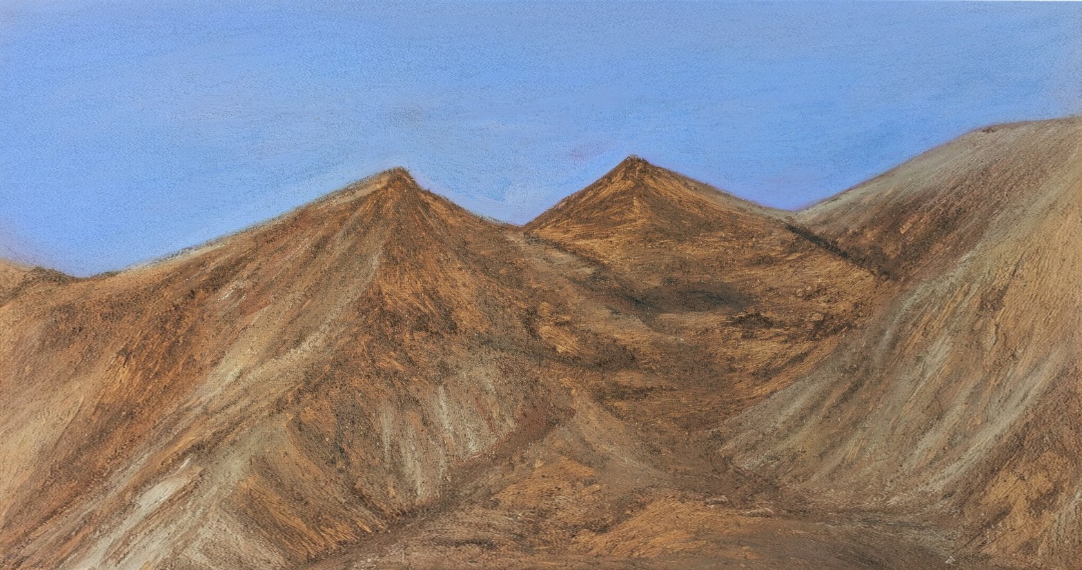 This artwork reflects not only Laura’s childhood memories but also her urgent message about climate change. The once-glorious mountains, now barren and desolate, stand as a warning—humanity’s disregard for the planet is pushing the natural world towards extinction. The river that once flowed freely at the base of the mountains now dwindles, a silent testimony to the consequences of environmental neglect.