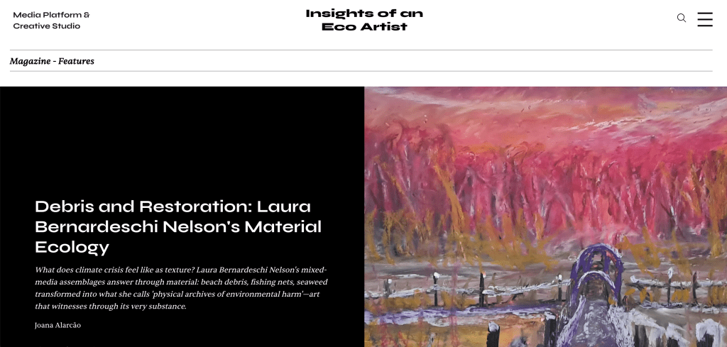 I’m delighted to share that my work has been featured in Insights of an Eco Artist in a new article titled “Debris and Restoration: Laura Bernardeschi Nelson’s Material Ecology.” Insights of a Young Ecological Artist