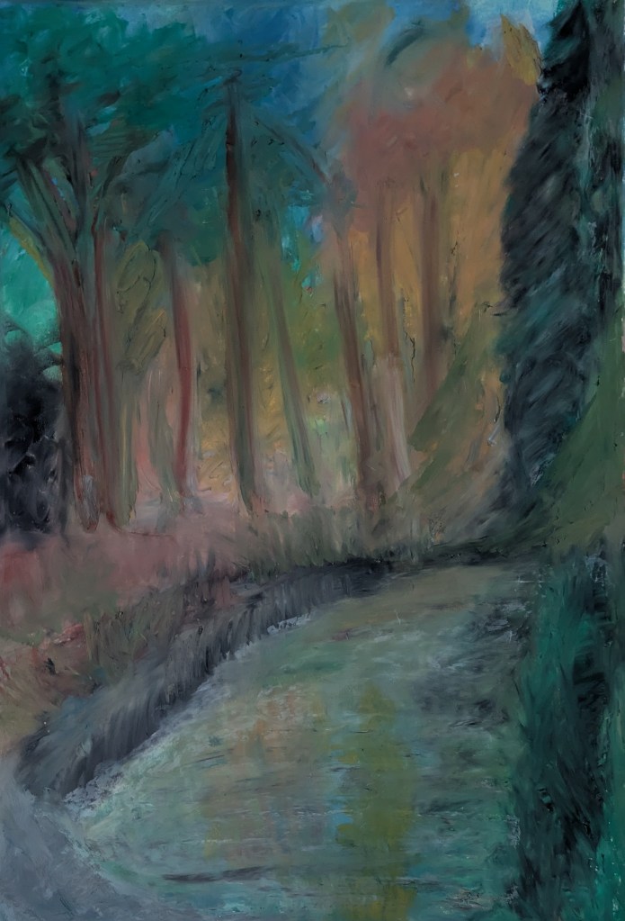 Rather than depicting a specific location, the work functions as an emotional landscape, reflecting an ongoing interest in natural environments as spaces of transition and reflection. It invites the viewer to linger, suggesting that meaning emerges through slowing down and observing subtle changes within the landscape.