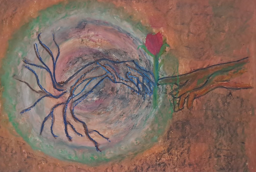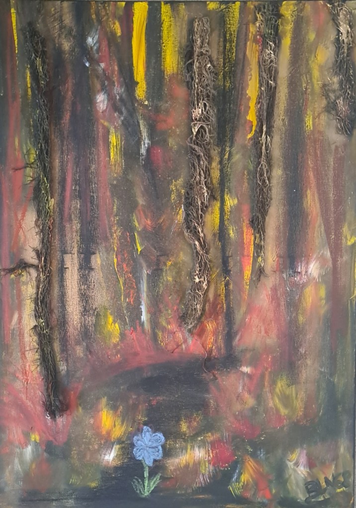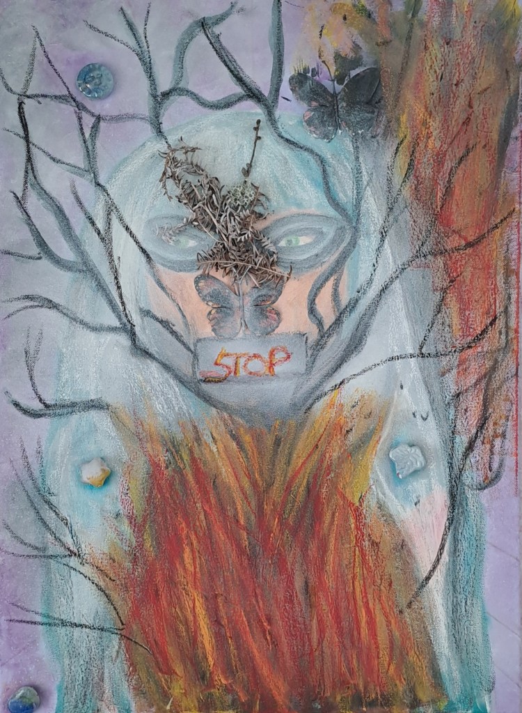 My work explores the delicate balance between human creation and ecological decline. Through mixed media, found objects, recycled plastic, oil pastels, spray paint, and acrylic colours, I transform discarded materials into poetic reflections on the changing climate.