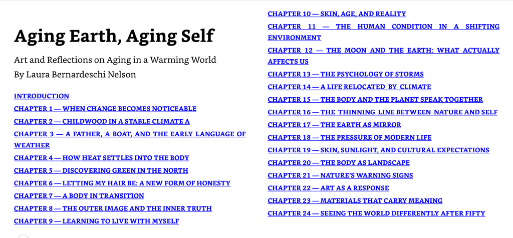 I feel equal parts proud, nervous, and wildly curious about where it will land—because this book is not only about climate change and not only about aging. It’s about the strange, honest place where the two meet. Where your body changes and the planet changes, and you start noticing that both transformations can feel… personal.