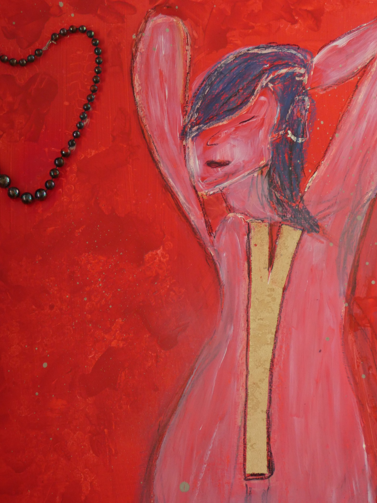 https://www.saatchiart.com/en-gb/art/Painting-The-Heart-Outside-by-Laura-Bernardeschi-Nelson/1049833/12581361/view Title:The Heart OutsideArtist Laura B. NelsonMeasures 50x56x3 cmSigned front and backMedia: :acrylics, oil pastels , found objects and spray chalk paint on hard board , varnished Using acrylic, oil pastels, and spray chalk paint on her old kitchen hardboard, Laura Bernardeschi Nelson created this piece of art, which depicts a woman in an expressiveContinueContinue reading “The Heart Outside: A Study in Emotion and Resilience”