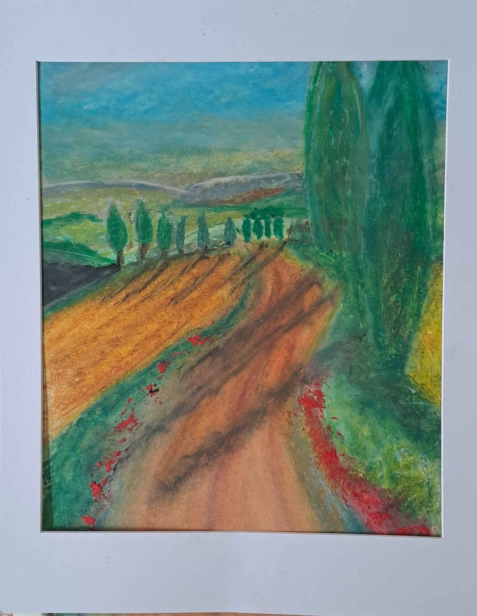 Oil Pastel Art: Sailing Into Dusk & Road to San Gimignano by Laura Bernardeschi Nelson