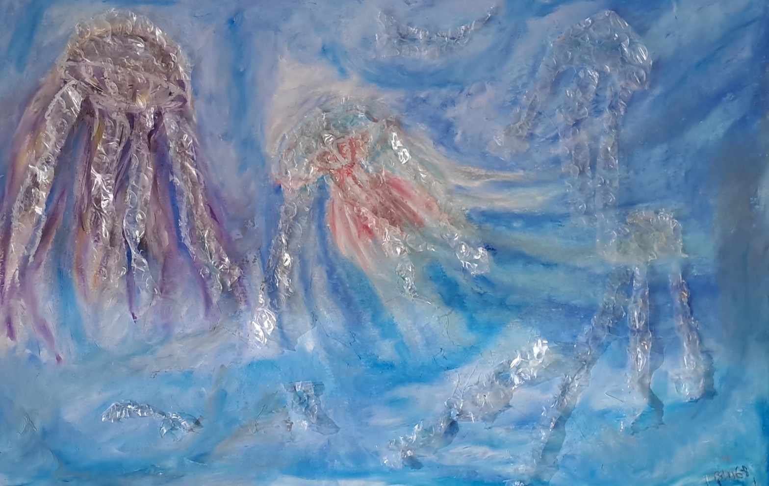 Pollution’s Ghosts Artist: Laura Bernardeschi NelsonMedium: Oil pastels, mixed media (recycled bubble wrap), and varnish on paperDimensions: 45 × 35 cm (unframed) — framed and ready to hangSigned: Front and backYear: 2025 Price £ 890 Description:Pollution’s Ghosts captures the fragile beauty of marine life dissolving into the shifting currents of a changing ocean. Created withContinueContinue reading “Pollution’s Ghosts: A Reflection on Marine Life”