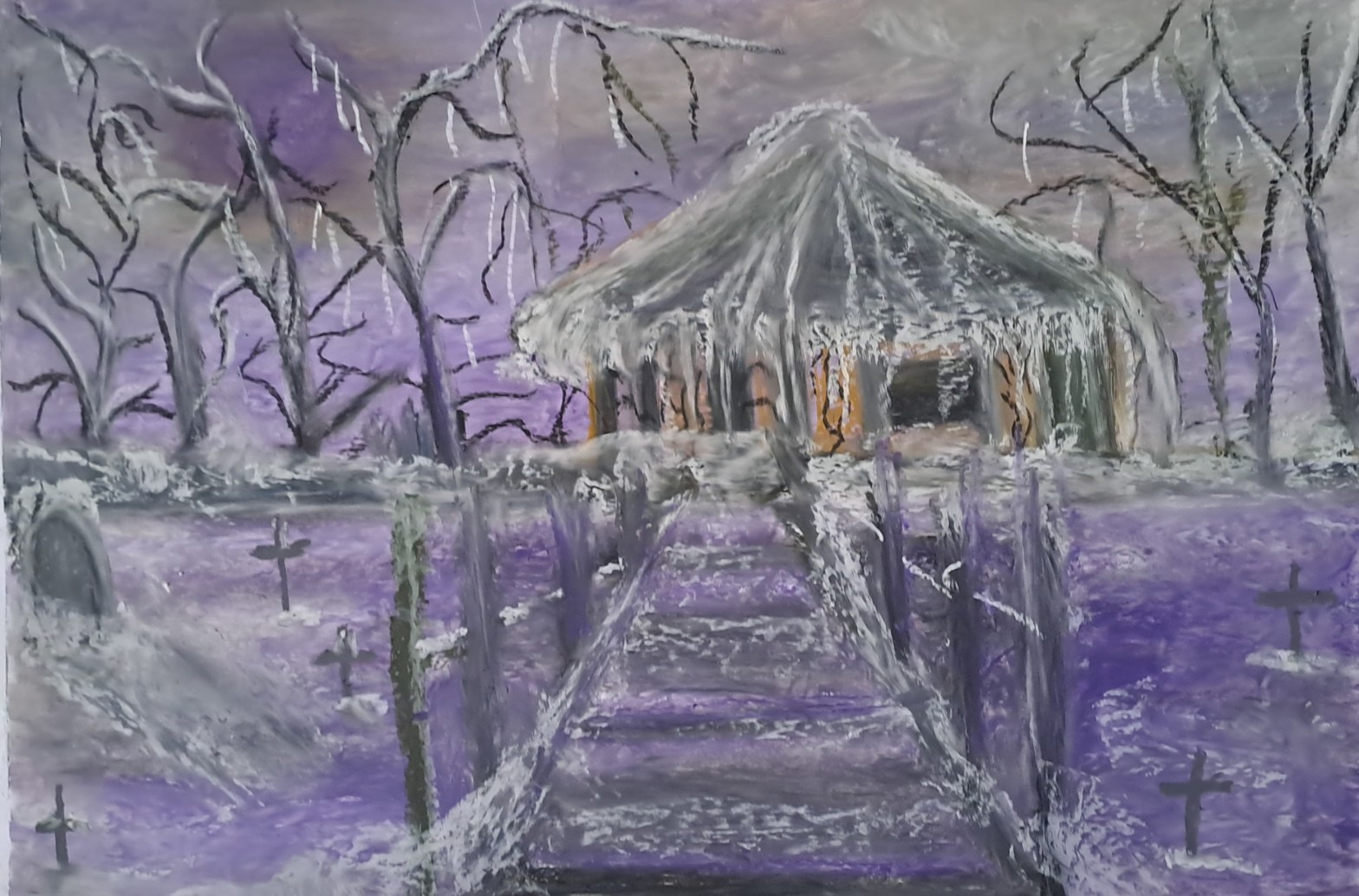 for sale on http://www.saatchiart.com/lauraartist68 Title: The Silent Wake Artist: Laura Bernardeschi NelsonMedium: Oil pastels on paperSize: Approximately 40 x 30 cm (15.7 x 11.8 inches)Framed: Yes (sold framed and ready to hang)Year: 2025Original artworkSigned: YesShipping: Professionally packaged for secure delivery 🌑 Artwork Description: Beneath a violet sky and veils of snow, a ghostly silence gripsContinueContinue reading “The Silent Wake: Gothic Art by Laura Bernardeschi Nelson”
