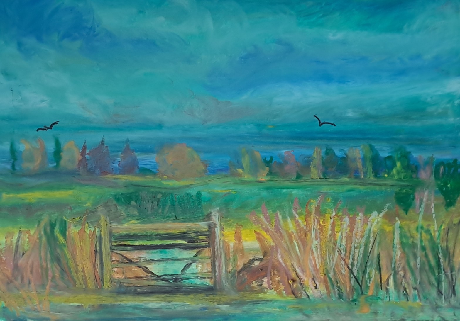 Clouds in the Sky Oil pastels on paper, 45 × 35 cmSigned, varnished, and sold framedBy Laura Bernardeschi Nelson In Clouds in the Sky, color becomes breath — the living pulse of air and land meeting beneath an ever-changing sky. This piece was created in oil pastels, a medium I love for its immediacy andContinueContinue reading “Oil Pastel Techniques in ‘Clouds in the Sky’ by Laura Bernardeschi Nelson”