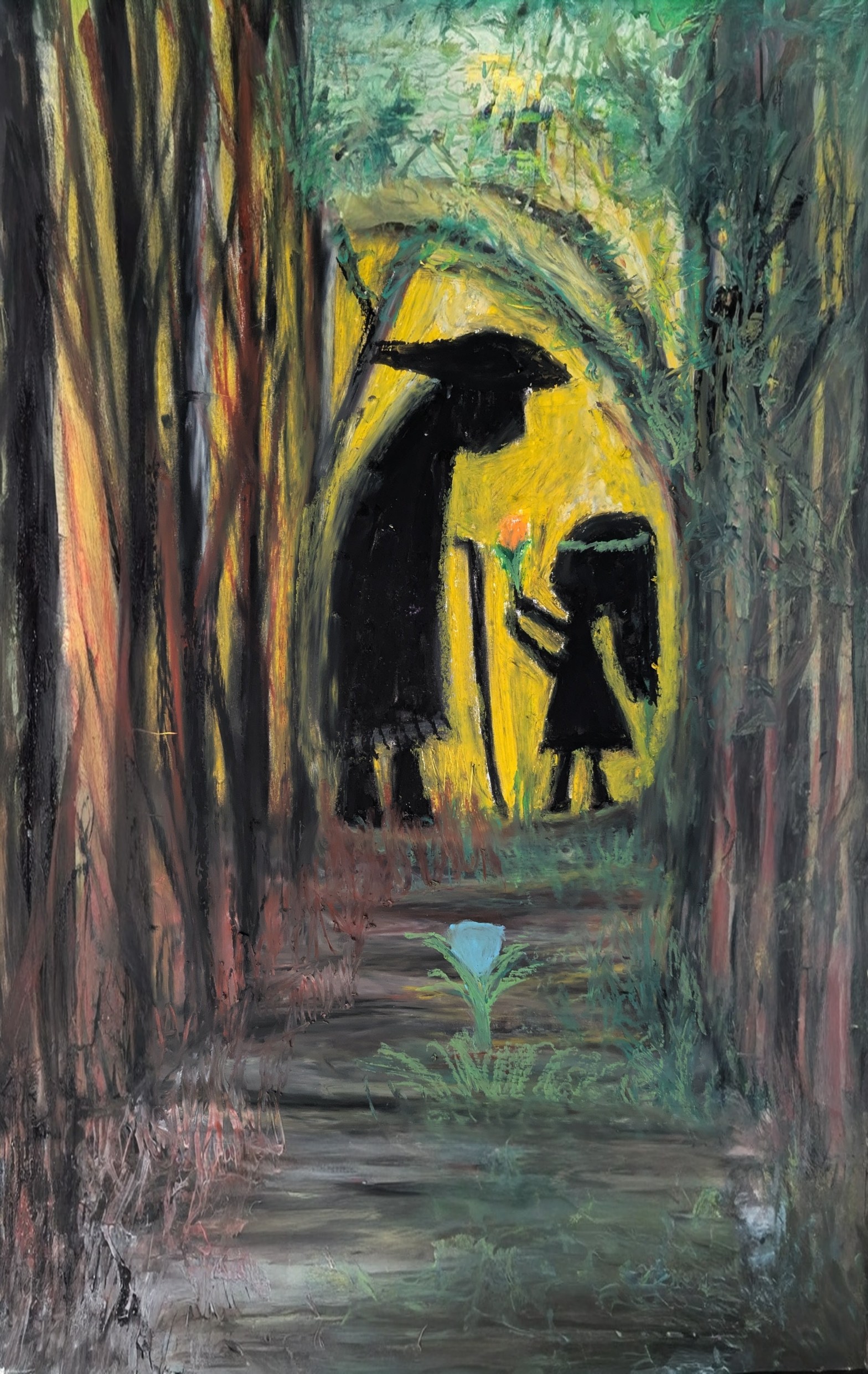 The Last Bloom Oil pastel on paper, 45 × 35 cm—framed, signed, varnishedArtist: Laura Bernardeschi Nelson Price £890 The Last Bloom portrays a deeply evocative moment set within a dark, transforming forest. In the centre of a glowing passage of yellow light, a young girl offers a single flower to an elder figure—two silhouettes meetingContinueContinue reading “Laura Bernardeschi Nelson’s ‘The Last Bloom’: A Visual Testament”